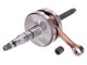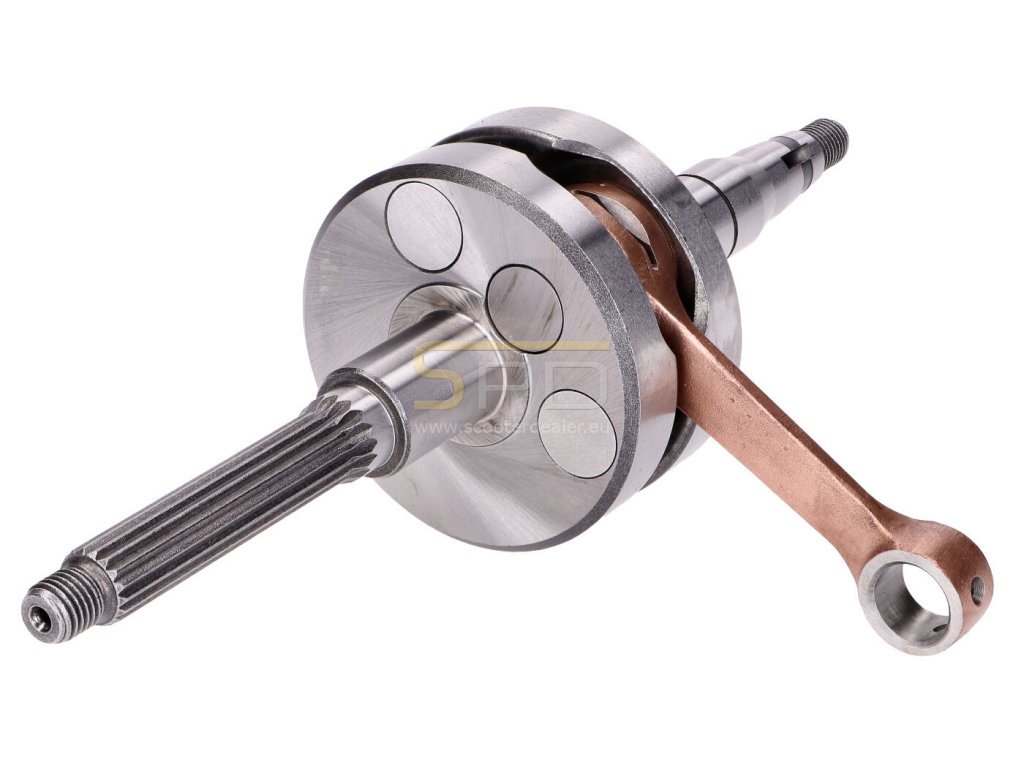 Top Racing Evolution versenyfőtengely fekvőhengeres Minarelli motoros robogókhoz. A Portugál gyártó felsőkategóriás versenyfőtengelye elsősorban komolyabban tuningolt robogókhoz / motorkerékpárokhoz ajánlott, természetesen ez nem egyenlő azzal, hogy sport tuninggal rendelkező kétkerekűekbe nem építhető be, hiszen azokhoz is maximálisan megfelelő, csak extra biztonságot jelent. Az Evolution változat már speciális, robosztus felépítésű hajtókarral, illetve könnyűfém centírbetétekkel érkezik. A könnyűfémmel (Alumínium, Wolfram, Réz) történő centírozási eljárásnak köszönhetően a főtengely még pontosabb kivitelben tud a vásárlókhoz jutni. Az új fejlesztésű hajtókar alsó szeme már nyitott, melynek következtében a karterben áramló keverék az alsó tűgörgőhöz is könnyedén bejut. Ennek akkor van kiemelten nagy előnye, ha az alkatrész extrém használatban van, és egy esetleges túlmelegedés veszélye áll fenn. Hasonló megoldás látható a felső szemnél is, hiszen ott is megtalálható az az olajozó furat ami komolyabb főtengelyeknél már elengedhetetlen. A gyártó a főtengelyhez mellékel egy HD, azaz extrém terhelés mellé tervezett speciális kialakítású felső tűgörgős kosarat is.