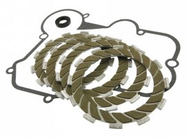 Motoforce Racing kuplungtárcsa szett. A németországi Motoforce már az 50ccm-es váltós modellekhez is kínál alkatrészeket. Ez a kuplungtárcsa szett az egyik olyan új alkatrész, amely már ilyen modellekhez készült. Amennyiben a gyári alkatrész elkopott, úgy ezzel az alkatrésszel könnyedén orvosolhatjuk a problémát. A szett Sport - Mid-Race tuningal rendelkező motorokhoz is alkalmazható, így amennyiben a jövőben motorunk tuningálását tervezzük, úgy nem kell majd azon gondolkozni, hogy milyen kuplung kerüljön bele. A szett ára magába foglalja a cseréhez szükséges tömítést, illetve a szimmeringet is.